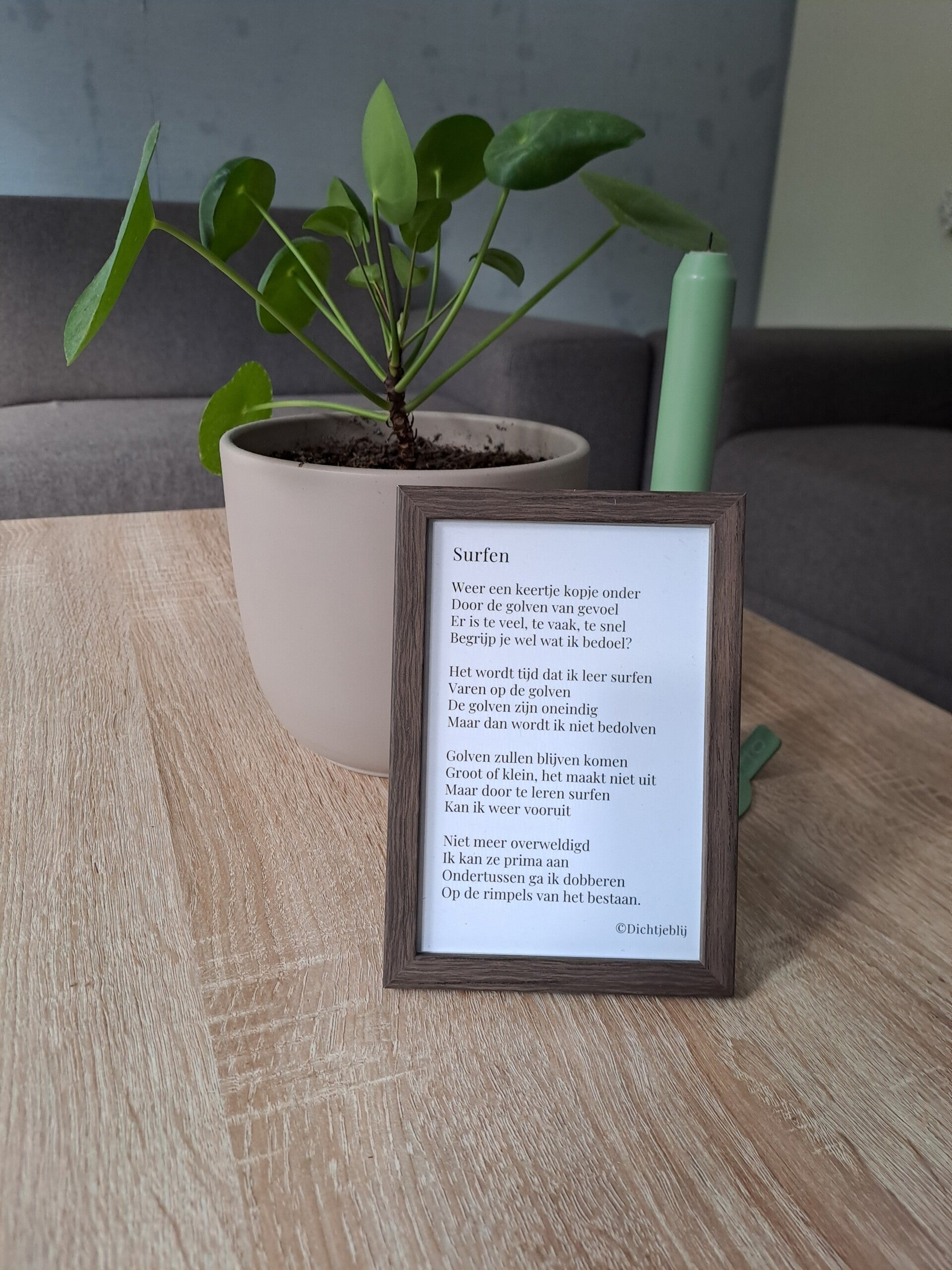 A6 kaart, geprint op 300 grams karton. Blanco achterkant
